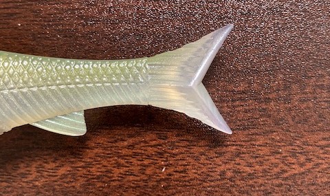 もちろん、ヴィローラスイムベイトもこの特徴を継承しており、スイムベイトで見た目の大きさがあるものの、テールの動きは極めて微弱となっています。