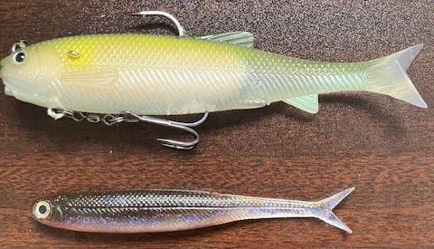 ちなみに、ヴィローラ 5インチとヴィローラスイムベイトのサイズ比較はこのようになります。